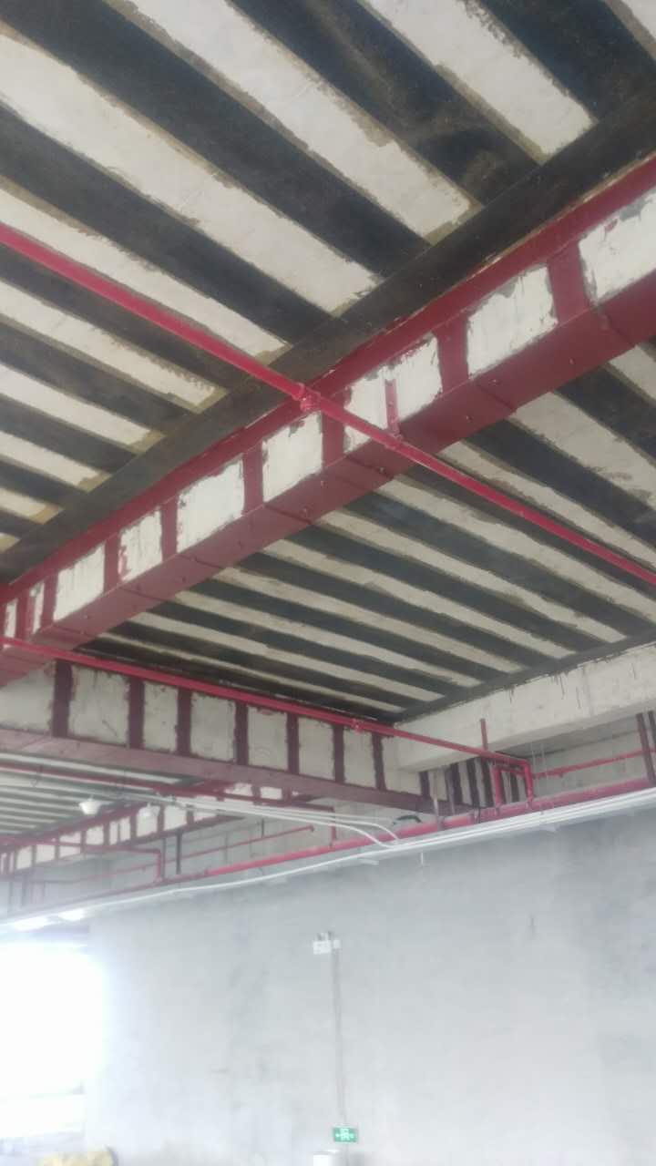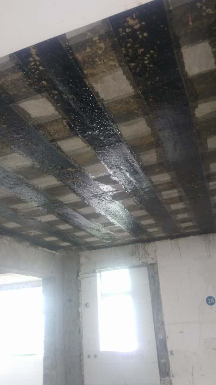 施工內(nèi)容:梁板粘貼碳纖維加固,具體包括混凝土面打磨、粘貼鋼壓條、截面加大、粘貼碳纖維、表面防護(hù)噴砂